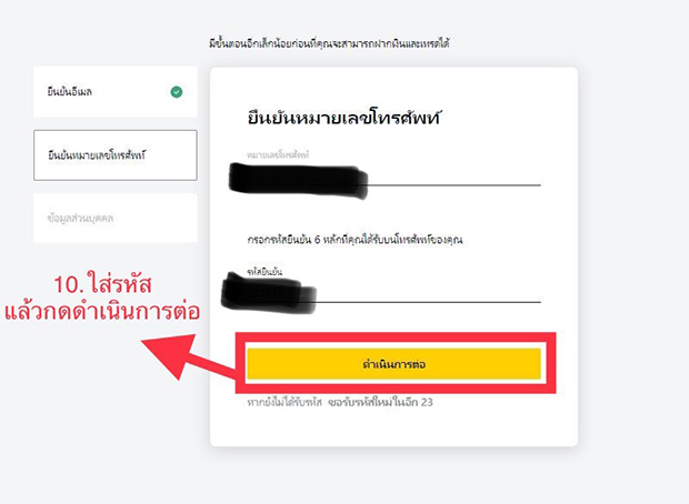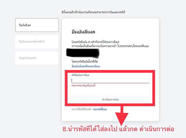 ได้รหัสแล้วนำมาใส่ในช่อง แล้วกดดำเนินการต่อ