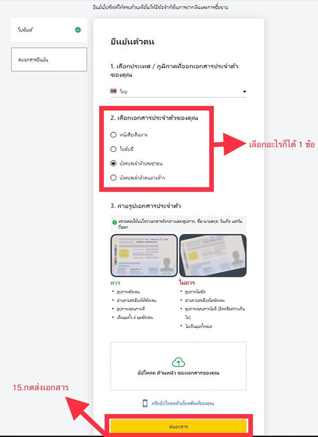 เลือกเอกสารประจำตัว แบบใดก็ได้ เสร็จแล้วกดส่งเอกสาร