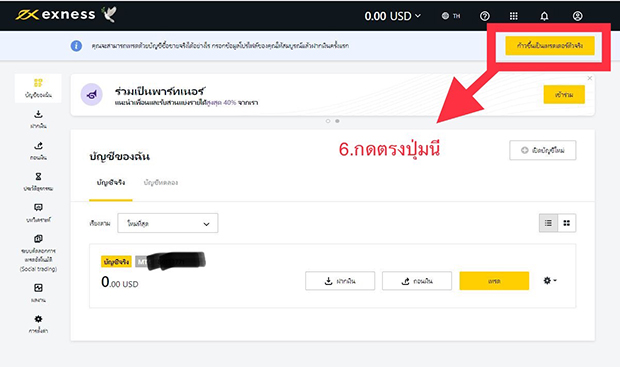 กดปุ่ม ก้าวขึ้นเป็นเทรดตัวจริง